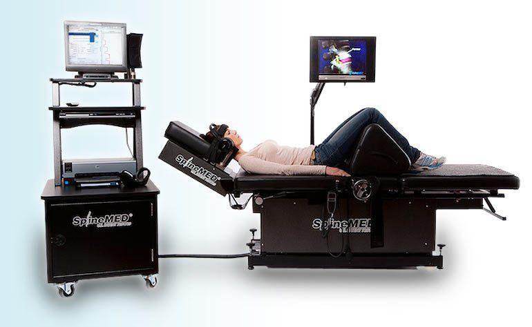 Die SpineMED-Therapie ist eine nichtoperative Behandlungsmethode von Bandscheibenerkrankungen und -degeneration an Hals- und Lendenwirbelsäule. Das betroffene Wirbelsäulensegment wird sanft maschinell gestreckt. Dadurch wird eine Entlastung und Druckminderung erreicht. Nährstoffe und Flüssigkeit können leichter das Bandscheibengewebe erreichen und regenerative Prozesse angeregt werden. Der natürliche Heilungsprozeß des Körpers wird effektiv unterstützt. Vorgefallenes Bandscheibengewebe kann sich bestenfalls wieder in den Zwischenwirbelraum zurückziehen.