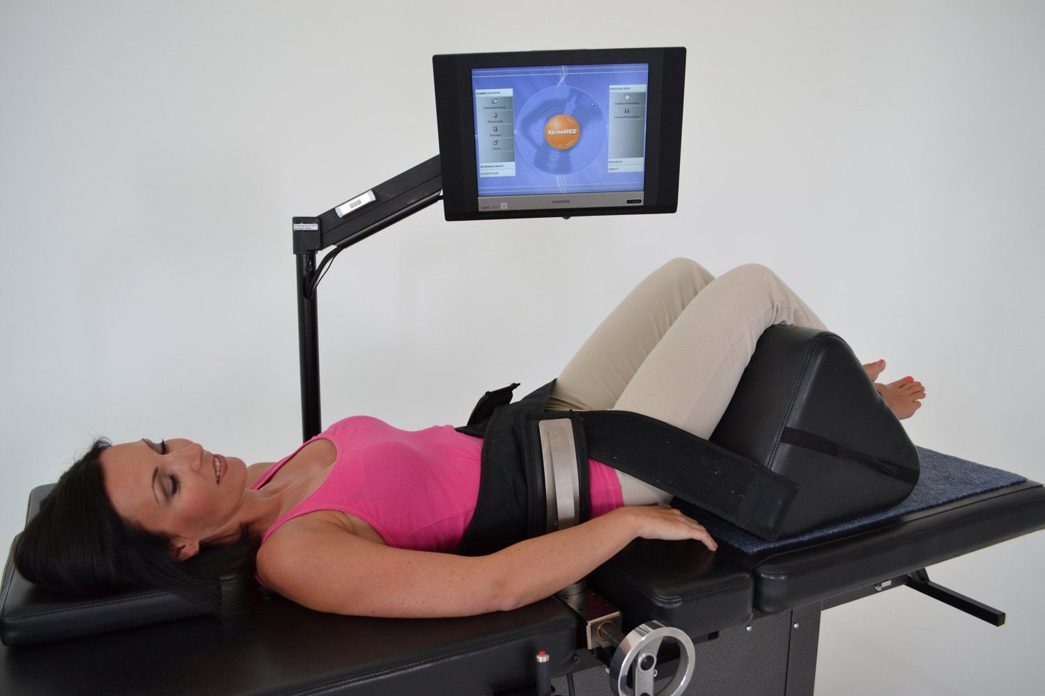 Die SpineMED-Therapie ist eine nichtoperative Behandlungsmethode von Bandscheibenerkrankungen und -degeneration an Hals- und Lendenwirbelsäule. Das betroffene Wirbelsäulensegment wird sanft maschinell gestreckt. Dadurch wird eine Entlastung und Druckminderung erreicht. Nährstoffe und Flüssigkeit können leichter das Bandscheibengewebe erreichen und regenerative Prozesse angeregt werden. Der natürliche Heilungsprozeß des Körpers wird effektiv unterstützt. Vorgefallenes Bandscheibengewebe kann sich bestenfalls wieder in den Zwischenwirbelraum zurückziehen.
